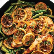 Very easy and flavorful. I would recommend frying the lemons after removing the chicken and then deglaze the pan with a little water to steam the asparagus in the delicious au jus. I then removed the asparagus and sautéed several handfuls of spinach/super greens in the remaining sauce. Plated the chicken, lemons and asparagus on top of the sautéed greens. Delicious and beautiful.