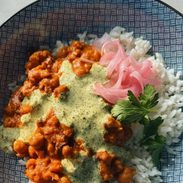 - Serve: Serve the butter cauliflower on rice and top with the mint sauce. Add pickled onions if you want. ENJOY!