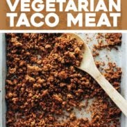 This vegetarian taco meat is made with cauliflower, walnuts, and chipotle peppers. It’s so easy: just mix and bake. Meatless miracle!