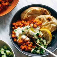 Wow, thank you so much for this recipe! I made it for my family of four, and we served a few kalamata olives on the side. Everyone loved it, and we actually looked forward to leftovers the next night. I think I just wanted an excuse to make/eat more whipped feta. Also, we served with little garlic naan circles of bread which were heavenly. Perfection, I would make this ever single week.
