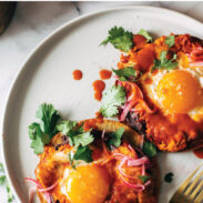 We’re making Red Chile Tostadas with Eggs! We’re talking creamy, crunchy, drippy, and tangy – the absolute perfect flavor combination.