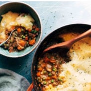 That being said, if you want this to be a completely vegan shepherd’s pie, just use olive oil instead of butter and maybe a splash of non-dairy milk in your potatoes and you will be golden. And if you’re gluten-free? I have a hack for you involving mashed potatoes – check the FAQs.