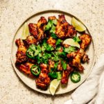 Place the chicken in the oven, check back every 5 minutes or so for signs of burning, you want a little char, but not too much.