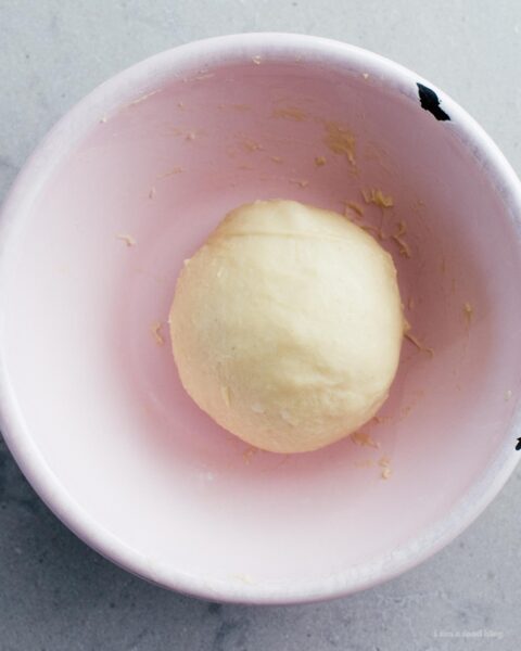 With the mixer still at medium, add the room temperature butter, a bit at a time, kneading until the butter is completely absorbed before adding the next bit. After all the butter is incorporated, continue to mix until the dough clings to the dough hook and passes the windowpane test. The dough should be smooth and shiny. Shape into a rough ball and transfer to a clean bowl, cover, and bulk rise at room temp for 2 hours. The dough will expand but not double. Cover tightly with plastic wrap and place in the fridge overnight.